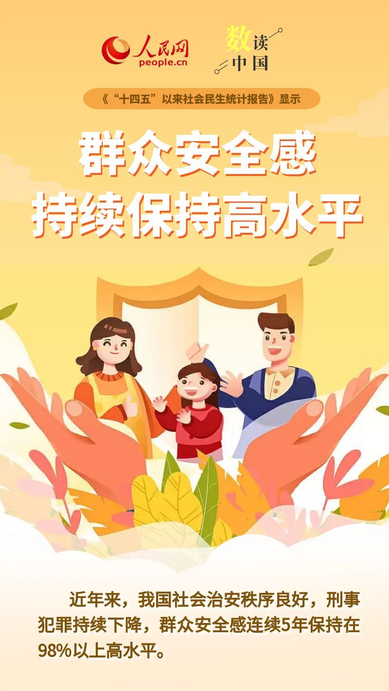 国家统计局28日最新发布《十四五以来社会民生统计报告》显示,十四五以来,我国社会治理聚焦提高人民生活品质,推进社会长治久安,妇女和青年获得更多发展机会,社会民生建设更有温度,群众安全感不断增强。