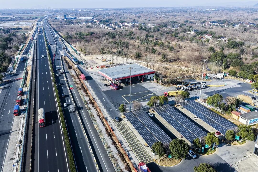 G50沪渝高速长兴服务区内的太阳能光伏板下是升级完成的高速服务区充电站。新华社记者徐昱摄