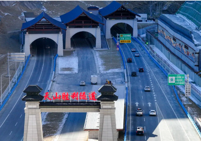2025年12月26日,车辆行驶在新疆乌尉高速公路天山胜利隧道入口端附近。 新华社记者 王菲 摄
